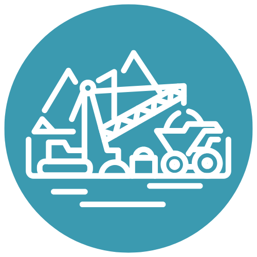 Construction and maintenance of key mining infrastructure such as hauling roads, stockpiles, settling ponds, and support facilities.